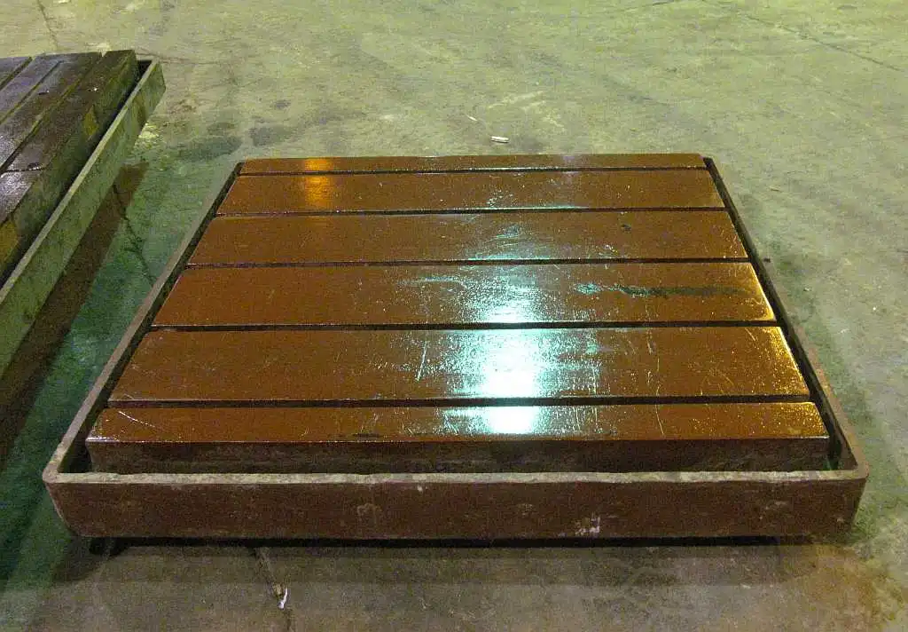FLOOR PLATE, 55" x 60" x 9", (5) T-SLOTS WITH COOLANT TROUGH