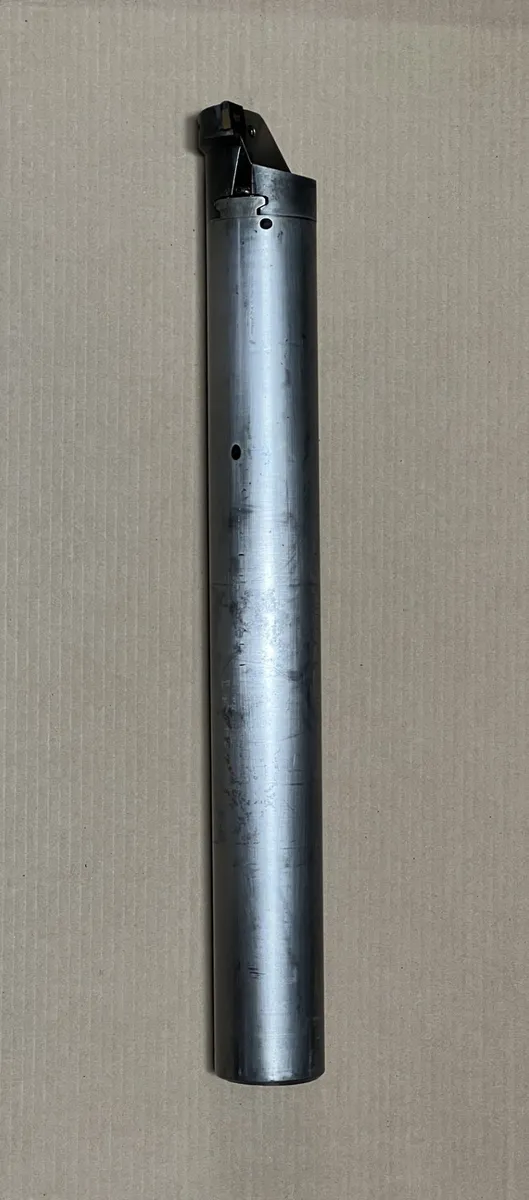 Sandvik Coromant boring bar, fits 48", 60" & 72" VTL'S, 27 1/2" overall length, 3 1/8" shaft diameter, 3 11/16" cutting diameter (also adjustable), has coolant holes. Pairs well with machined holder #11245 on our website.