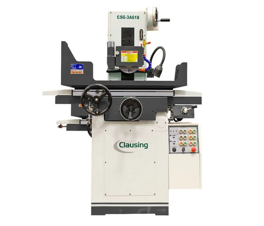 Clausing Manual Precision Surface Grinder, hydraulic driven longitudinal movement and servo motor driven crossfeed, rapid UP/Down head position motor, 6”x18” table size, X Maximum manual travel of 20”, Turcite B coated V and Flat ways for wear protection, 2 Hp Spindle drive motor, 230 or 460 volts