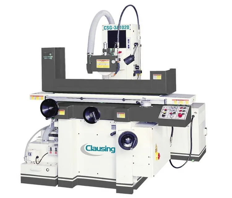 Clausing Manual Precision Surface Grinder, hydraulic driven longitudinal movement and servo motor driven crossfeed, rapid Up/Down head position motor, 10”x20” table size, X Maximum manual travel of 24.41”, Turcite B coated V and Flat ways for wear protection, 3 Hp Spindle drive motor