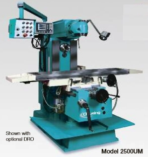 Introducing the new Clausing 2500U Universal Mill. With a 13.7" x 59" table, 7.5 hp power, and 12 spindle speeds ranging from 40-1800 rpm, this machine is designed for precision and versatility in machining tasks. Ideal for heavy-duty projects.