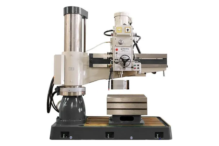 This New Clausing CLC1250H Radial Drill Features a 49.2” Arm, 25.1 x 20.4 x 16.5 Box Table, 1.97” Drilling Capacity Steel, 1.57’ Tapping Capacity Steel, 5 Hp 2-Speed Spindle Motor, W/CE Electrics, Spindle Guard, 12 – Speed Geared Head, 56 to 1450 rpm Spindle Speed, Self-Contained Coolant System, 230/460 Volts 3 Phase