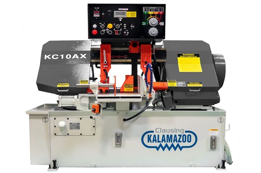 Discover the 2025 Clausing Kalamazoo KC10AX automatic horizontal bandsaw. This new 3 HP machine offers a 10” x 11” rectangular cutting capacity with features like variable blade speeds, hydraulic down feed, and a recirculating coolant system.