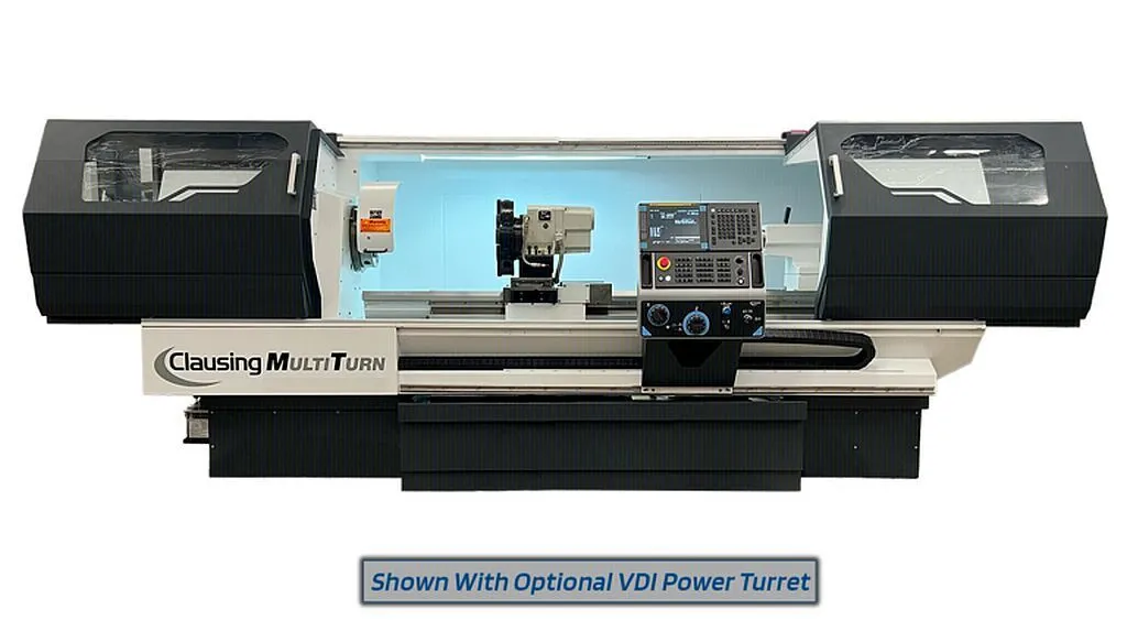 Clausing Colchester Multi-Turn Flat Bed CNC Lathe With Teach Functions. 18.1” Swing over bed, 3 Gear Infinitely Variable Speed Ranges 1 – 2200rpm, 15 Hp Spindle motor, 60” between centers, 10.6” Swing over the cross slide, 3” Spindle Bore, D1-8 camlock spindle nose, 3.7” Tailstock quill diameter with 6 morse taper bore. 230/460 Volts, 3 Phase