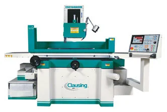 Clausing Automatic Precision Surface Grinder, Delta PLC conversational digital controller with 7.2” color touch screen, hydraulic driven longitudinal movement and servo motor driven crossfeed, programmable Up/Down head positioning, 12”x36” table size, X Maximum manual travel of 39.37”, Turcite B coated V and Flat ways for wear protection, 7.5 Hp Spindle drive motor