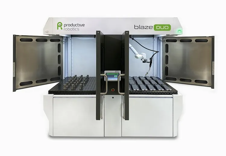Introducing the new 2025 Productive Robotics Blaze Duo Cobots. This award winning welding cell features a dual station enclosed high production welding system and includes advanced video monitoring. ISO 10218-1 compliant, it learns by demonstration without programming.