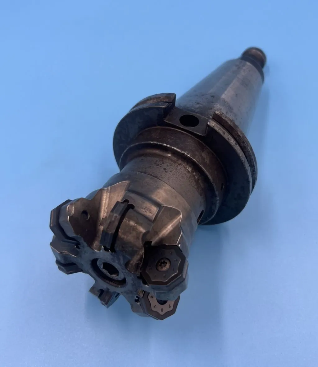 This Seco toolholder has a Seco R220.21-03.00-ON09-6A face milling cutter that is 3" in diameter.