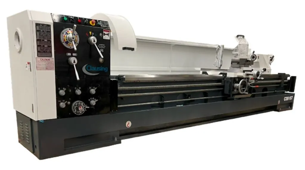 This Clausing C26118 Geared Head, Gap Bed Engine Lathe has 26.7” Swing over bed, 20 Hp Spindle motor, 118” between centers, 17.32” Swing over the cross slide, 15 to 1000 RPM, 12 Speed, 4.125” Spindle Bore, A2-11 spindle nose, 4.13” Tailstock quill diameter with 6 morse taper bore, Inch/Metric threading with various pitch settings, 230/460 Volts, 3 Phase