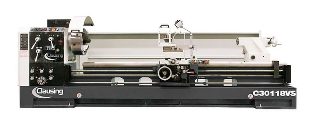 30.7” Swing over bed, Variable Speed Gap Bed Engine Lathe, 20 Hp Spindle motor, 118” between centers, 21.25” Swing over the cross slide, 25 to 1000 RPM, 4 Speed gear range, 4.125” Spindle Bore, A2-11 spindle nose, 4.13” Tailstock quill diameter with 6 morse taper bore, Inch/Metric threading with various pitch settings, 230/460 Volts, 3 Phase