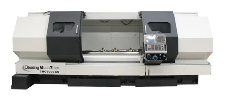 This Clausing Colchester/Harrison CNC6000XS/SC Multi-Turn Flat Bed CNC Lathe With Teach Functions has: Exclusive Alpha system control, 30” Swing over bed, 3 Gear Infinitely Variable Speed Ranges 26 – 2000rpm, 25 Hp Spindle motor, 22” Swing over the cross slide, 4.09” Spindle Bore, D1-11 camlock spindle nose, 4.125” Tailstock quill diameter with 6 morse taper bore. 230/460 Volts, 3 Phase