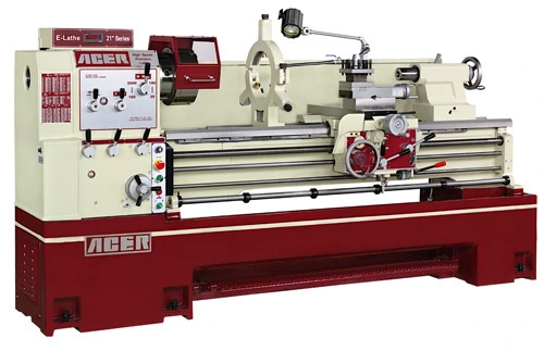 Introducing the new ACER 22120V E-Lathe. This precision engine lathe boasts a 22" swing, 118.1" between centers, 3.3" spindle bore, 10hp power, and ranges up to 1,500 RPM. Includes essential accessories and optional add-ons for tailored functionality.