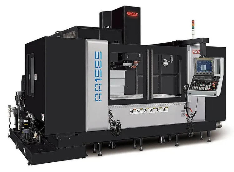 2026 WELE AA1165 Vertical Machining Center, new condition. Features include a 43.3" X-axis, 25.6" Y-axis, 23.6" Z-axis, 25 hp, 6,000 RPM, 32 ATC, CAT-50 taper, and 3-axis capability. Contact for detailed specs.